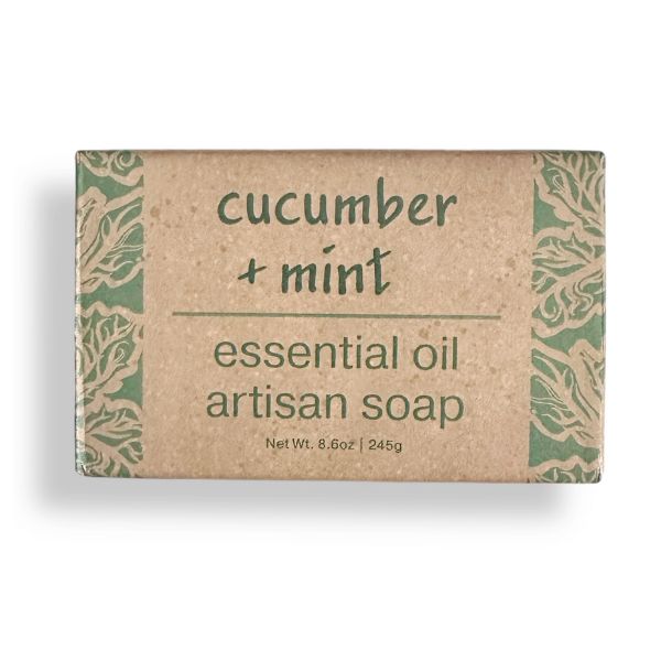 Cucumber and mint soap: infused with peppermint essential oil, enriched with shea butter, cocoa butter, virgin olive oil, grapeseed oil & cucumber oil and blended with oatmeal, cucumber seed