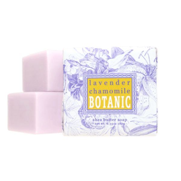 Both chamomile and lavender are known to reduce redness and irritation of the skin. Chamomile soothes inflamed skin and lavender is great for soothing the itch and irritation of eczema, psoriasis and dermatitis. Both lavender and chamomile also relieve the itchiness of mosquito and other insect bites. French -milled, luxurious vegetable soaps enriched with shea butter, essential oils, and natural extracts